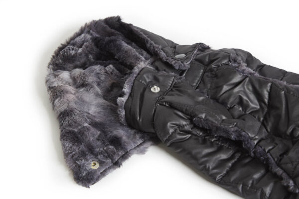 Proteggi dal freddo il tuo cagnolino con il Cappotto trapuntato completamente foderato in eco pelliccia con cappuccio rimovibile di Fashion Dog